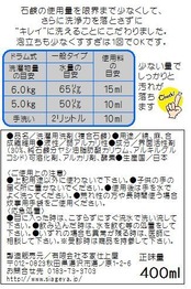 ●成 分/界面活性剤(30%、純石鹸分ヤシ油脂肪酸カリウム、アルキルグルコシド)可溶化剤、アルカリ剤、酵素